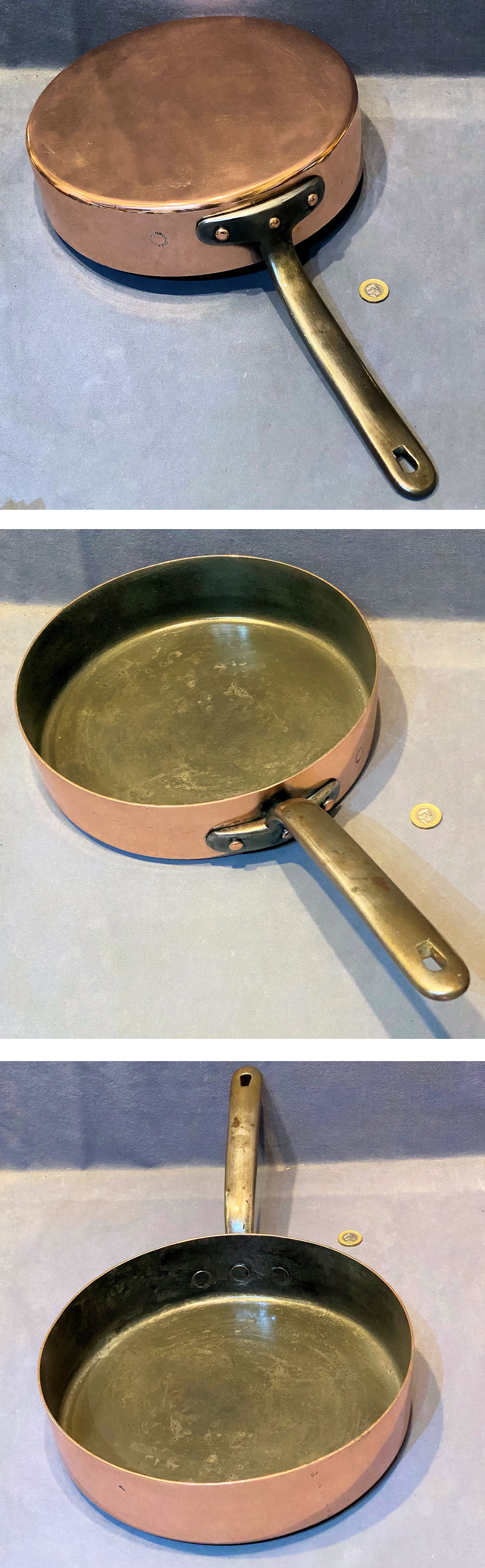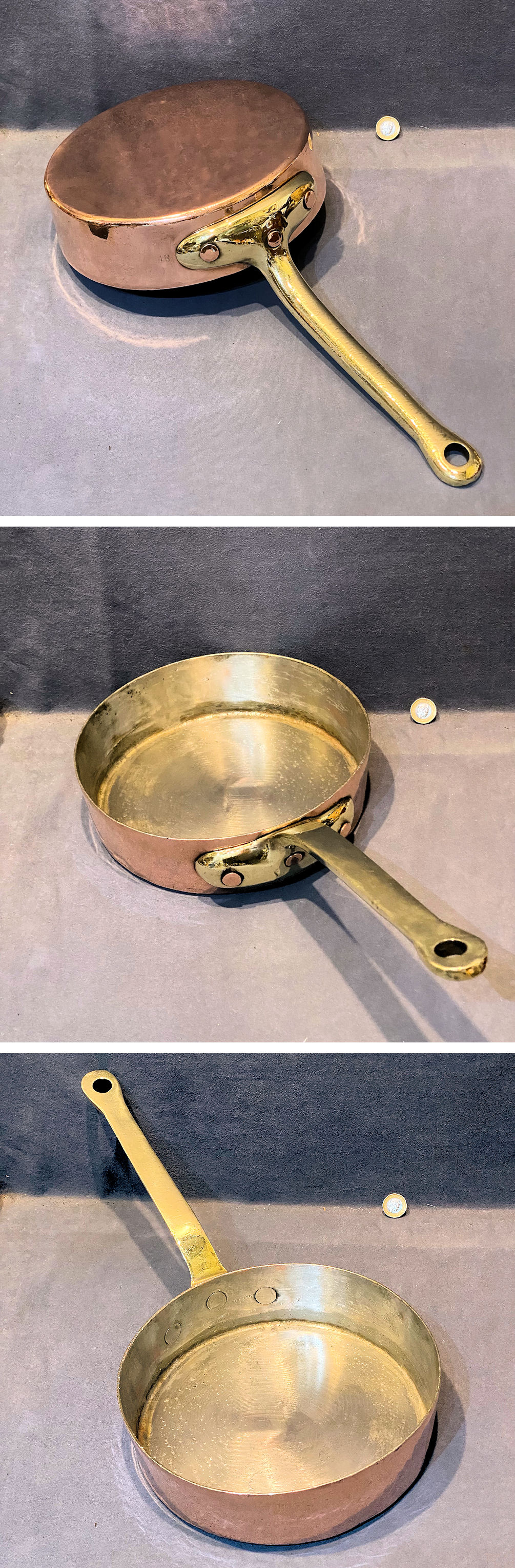 Jones Bros Deep Copper Frypan FP43 Original, quality late 19th century superb deep copper frypan with good tinning to the interior, a steel handle to the side with copper rivets and impressed for the maker "Jones Bros. Down St." (London). All has been polished and lacquered, although the lacquer may be removed at no extra cost and complete and in good and working order.