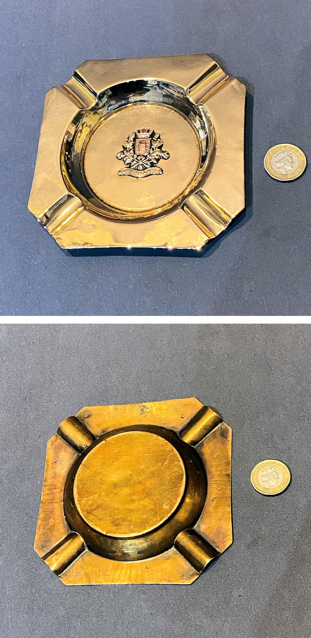 Arras Brass Ashtray M162 Original, quality 1920's / 30's brass ashtray with the coat of arms for the town of "Arras". Arras was the site of a British offensive on the Western Front during the First World War and was referred to as "The Battle of Arras in 1917". This item could be termed as "Trench Art". Polished and lacquered, although the lacquer may be removed at no extra cost and complete and in good and working order.