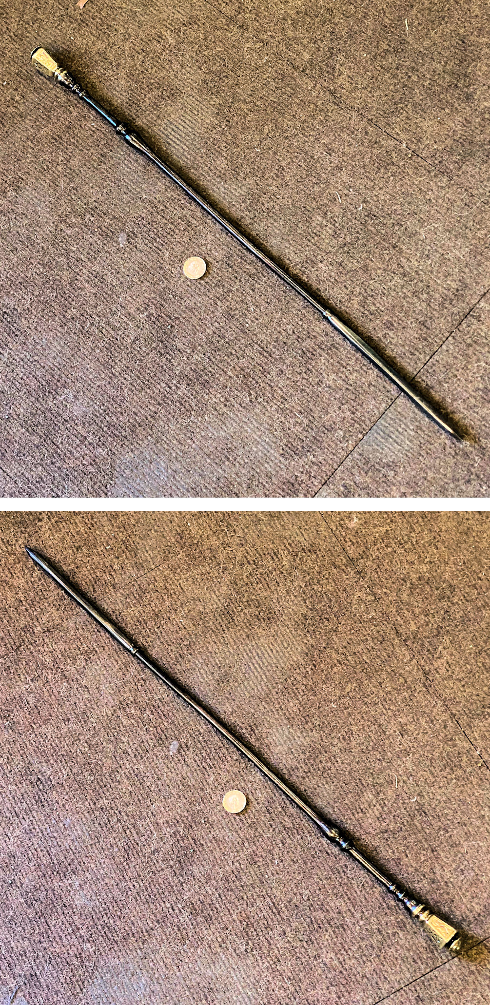 Wrought Iron Poker F672 Original, quality late 19th century continental wrought iron fireside poker with a replacement tip made to suit, and a decorated upper section. All has been cleaned and lacquered and is complete and in good and working order.