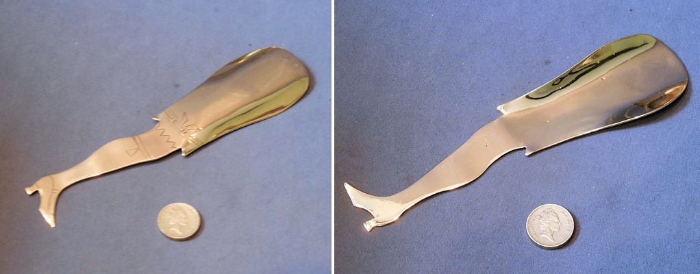 Ladies Leg Brass Shoehorn SH18 Original, quality superb sheet brass shoehorn circa 1900 in the form of a lady's leg circa 1900. This example has scratch engraving of the shoe, garter and knickerbockers in good detail. All has been polished and lacquered, although the lacquer may be removed at no extra cost and complete and in good and working order.