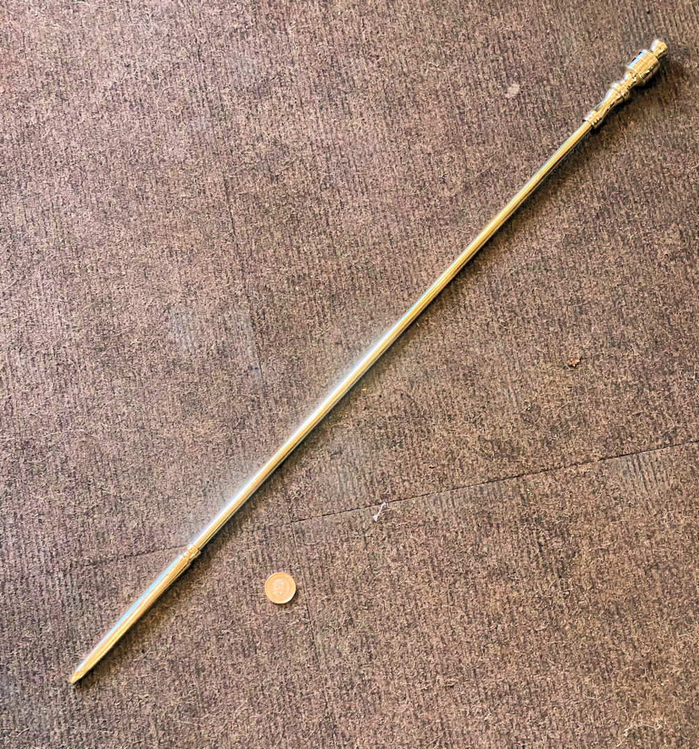 Brass Fireside Poker F715 Original, quality 1920's all brass fireside poker with a shaped top grip and a replacement brass tip made to suit. Polished and lacquered, although the lacquer may be removed at no extra cost and complete and in good and working order.