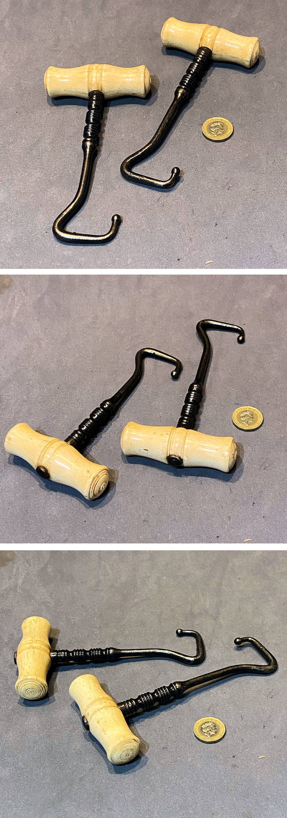 Pair of Bone Handled Boot Pulls BJ17 Original, quality pair of late 19th century boot pulls with decorative steel stems and turned bone handles. An unusual example and complete and in good and working order.