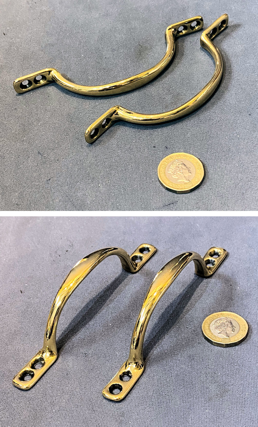 Single Brass Sash Window Lift W530 Original, quality 1920's single cast brass sash window lift with oval mounting plates and a tapered central grip. Also ideal as a door pull. Each backplate has three countersunk screw holes for mounting and one is impressed with "GR" and a crown for the Reign of King George The 5th. This lift would have been used in a government building. All has been polished and lacquered, although the lacquer may be removed at no extra cost and is complete and in good and working order.
