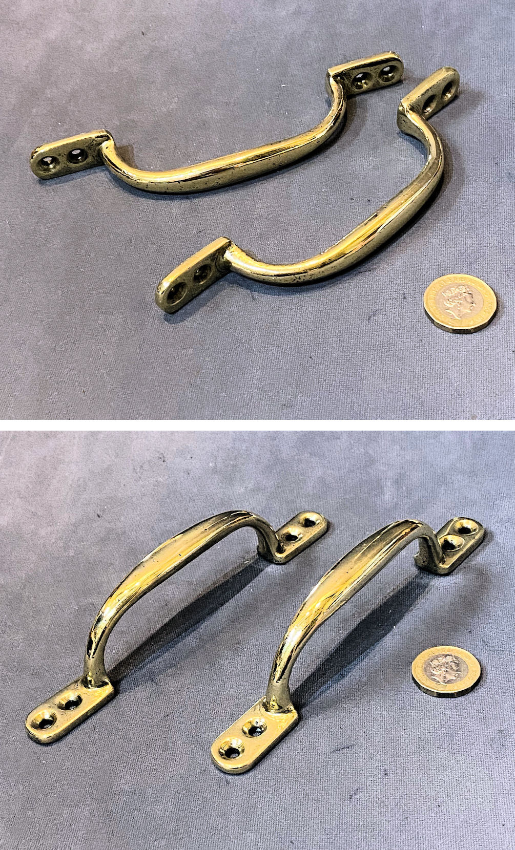 Pair of Brass Sash Window Lifts W537 Original, quality pair of late 19th century brass sash window lifts with a tapered grip and four countersunk screw holes for mounting. Also suitable for door pulls. Polished and lacquered, although the lacquer may be removed at no extra cost and complete and in good and working order. Other very similar may well be available ref code: W535 & W536.