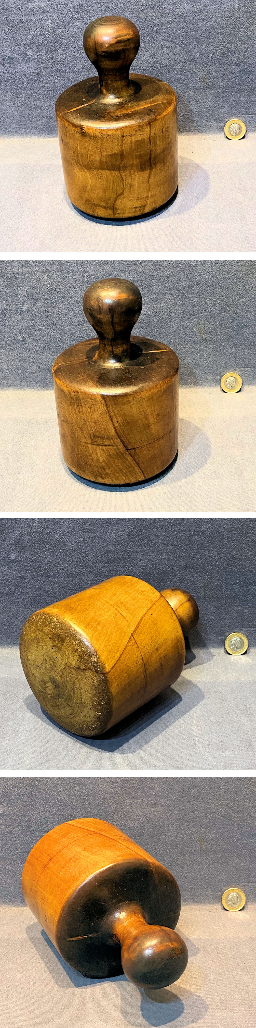 Huge Sycamore Pork Pie Mould T41 Original, quality late 19th century Huge Pork Pie Mould in sycamore. These were used with cold water pastry pulled up the sides to form the perfect cup shape for the filling. One old wormhole well treated, a super colour and the largest we have seen. Complete and in good and working order.