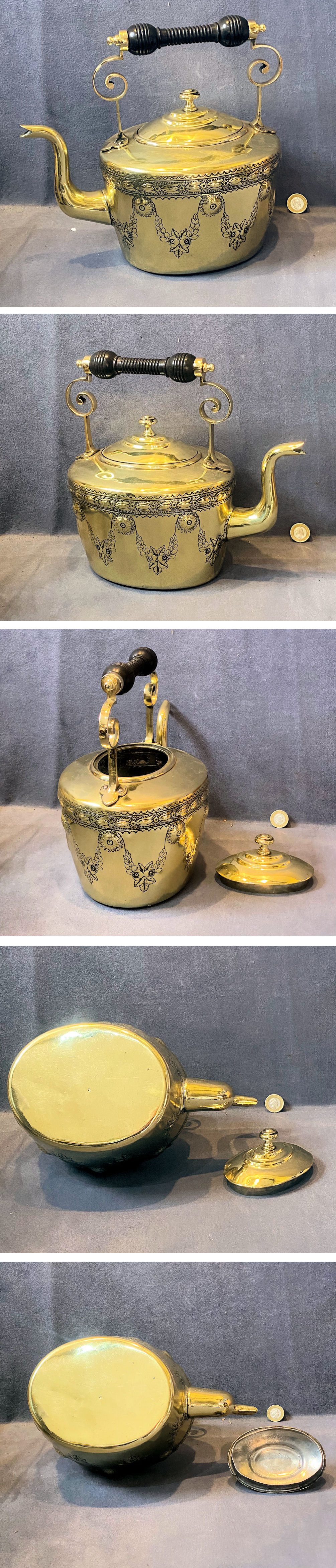 Benson Copper Teapot TP33 Original, quality circa 1900, copper teapot of an Art & Crafts form with brass fittings. The underside has the impressed mark of three hammers in a shield for the maker and designer W.A.S Benson. Some staining to the interior and casting marks to the rim of the teapot, otherwise complete and in good and working order. Polished and lacquered, although the lacquer may be removed at no extra cost.