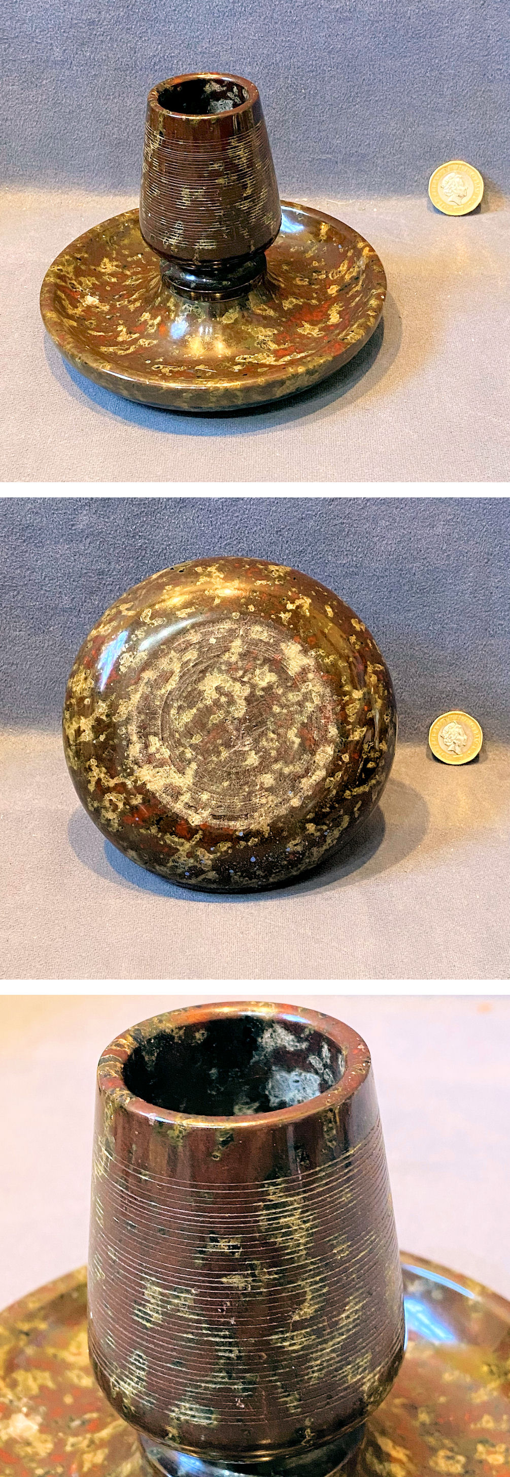Serpertine Stone Match Striker MS79 Original, quality circa 1900, matchstriker made from Cornish "Serpentinite Stone" with a central pot to hold the matches and the saucer shaped base for the used matches. Most unusual in serpertine and complete and in good and working order.