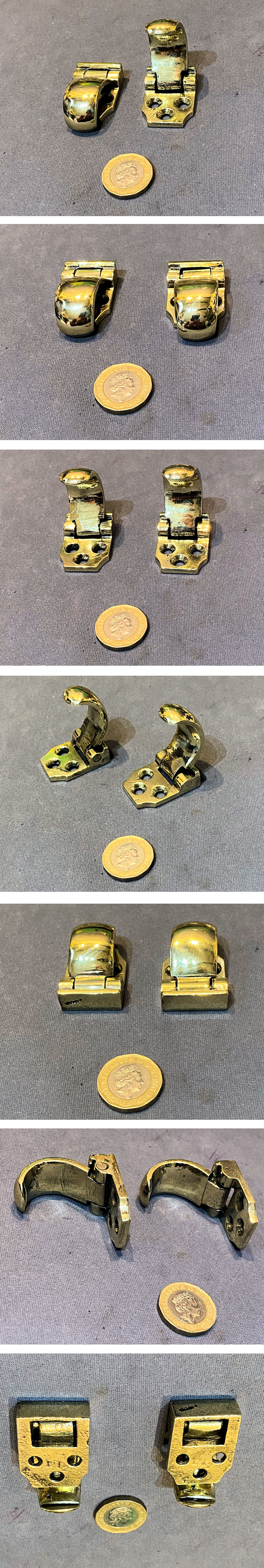 Run of Brass Casement Window Stays W459 Original, quality 1920's cast pink brass casement window stays with two pins for each. These examples have upturned grips and seven holes for adjustment and, each backplate has four countersunk screw holes for mounting and the pins each have two. Polished and lacquered, although the lacquer may be removed at no extra cost and complete and in good and working order. Matching casement catches may well be available ref code: W460.